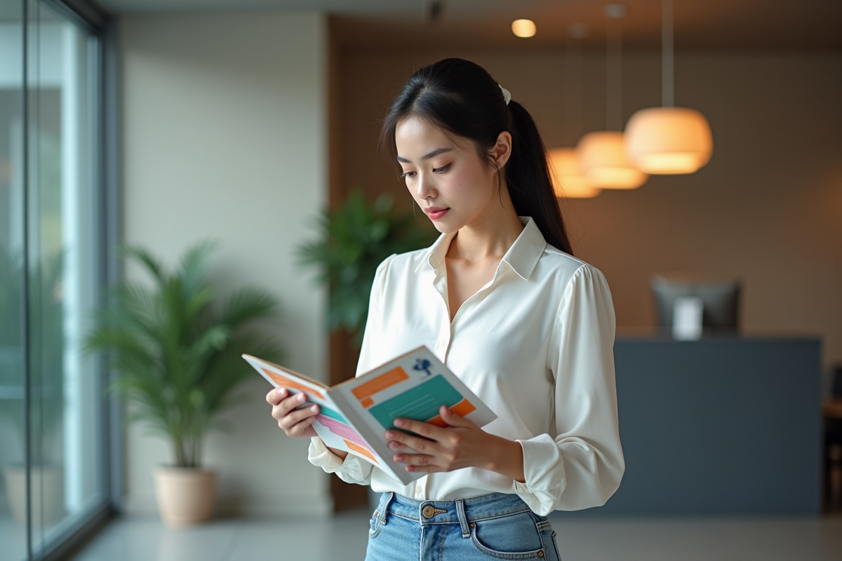 Le flyer, pensé pour la distribution rapide, s’exprime dans les petits formats comme le A5, le A6 ou le DL (10,5 x 21 cm). Un papier souple s’impose, pour réduire le coût et faciliter la prise en main, même si sa durée de vie reste courte. Quant à la brochure, elle se démarque par sa qualité perçue : plusieurs pages, un papier épais, une reliure soignée, tout concourt à valoriser le contenu. Chaque détail compte pour structurer l’information et accompagner le lecteur.