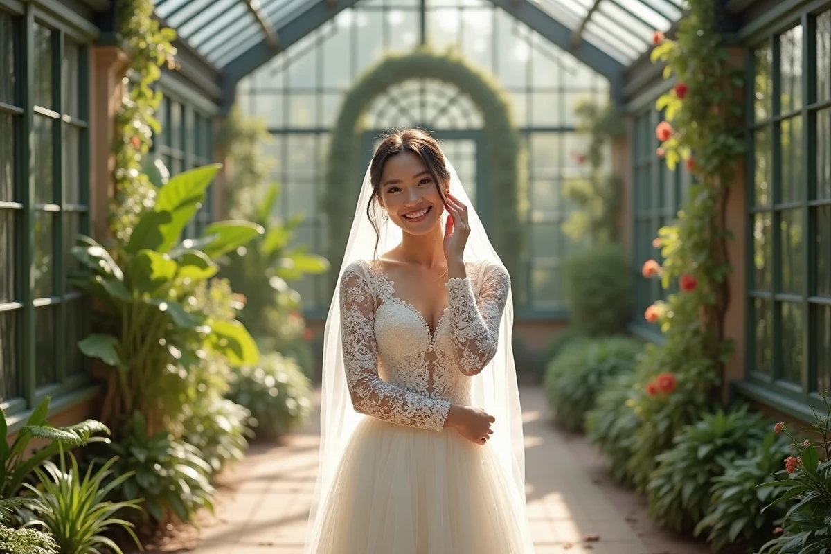 Robe de mariée princesse encolure en V embelli de appliques florales et de bijoux
